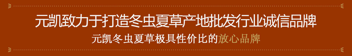 公司專業(yè)致力于青藏高原野生冬蟲夏草銷售、采收、精選包裝和現(xiàn)代化生產(chǎn)、研發(fā)等,并且在青海玉樹西藏那曲設立了采購站,專門采購地道的野生冬蟲夏草,充分保證了產(chǎn)品的品質。元凱長期向國內眾多著名藥材經(jīng)銷商、港澳臺以及東南亞中藥材采購商供應冬蟲夏草,多次被省、市、縣授予多種榮譽稱號“青海省知名商標”、“青海省誠信單位”、“青海省名優(yōu)企業(yè)”、“守合同重信用企業(yè)”等。
